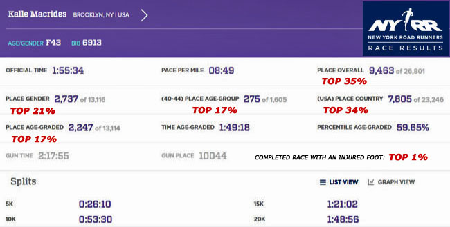 to run and did finish the race, at that point with a severely swollen foot. And once her race-time